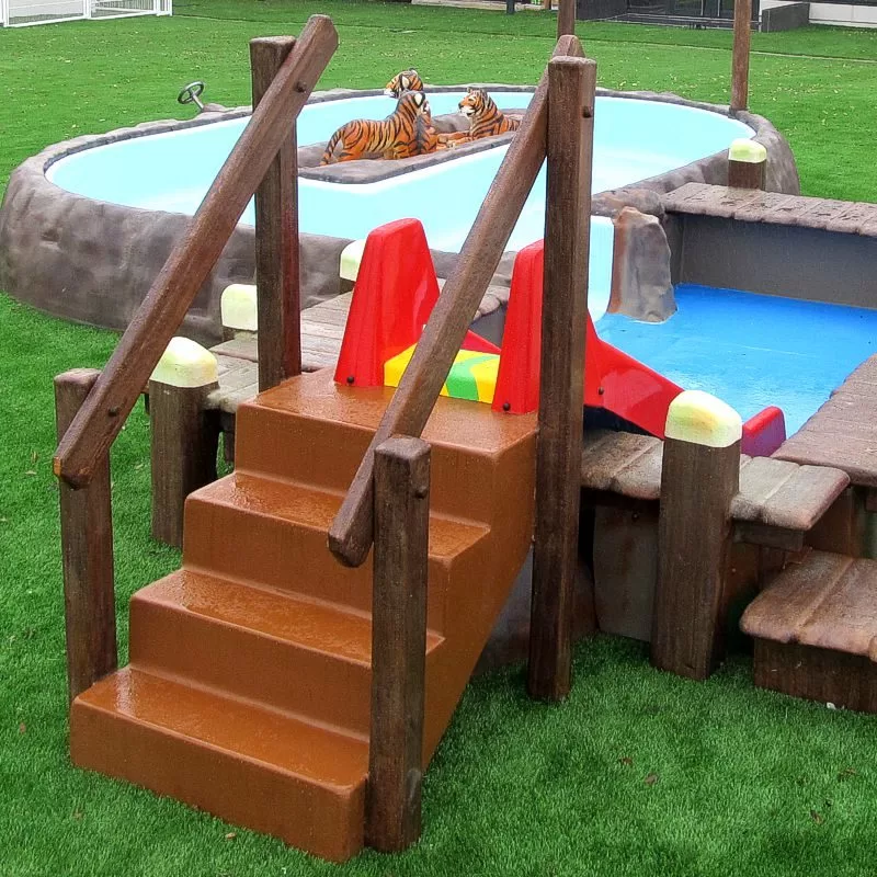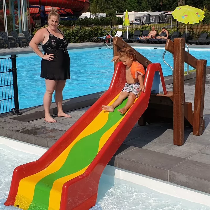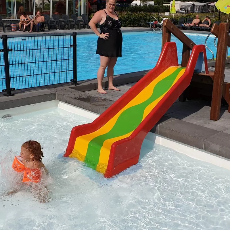 Slide from hight 75 cm, slide can be adapted to your pool situation. Starting on the side ,or completely inside the pool ….let us know your pool situation and we will take care.