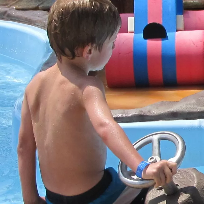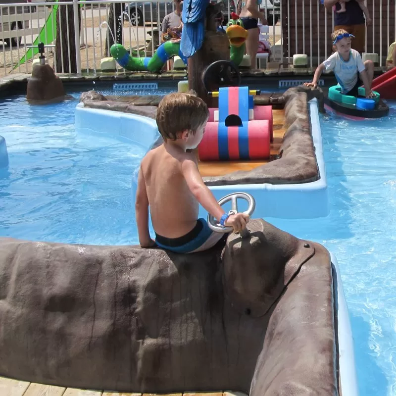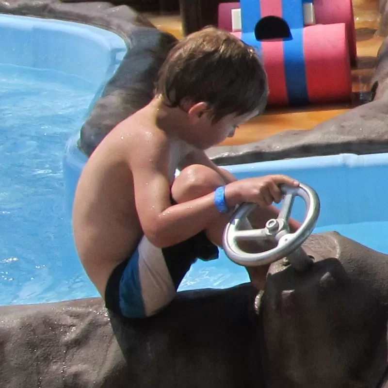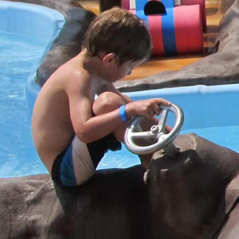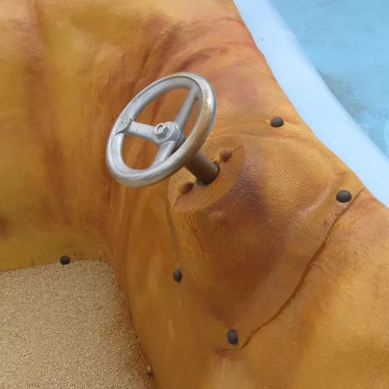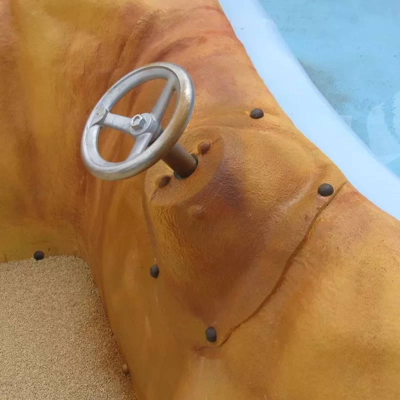 Can be connected with a waterspouting play feature. Turning the wheel will increase or weaken the strength of the waterjet