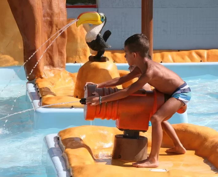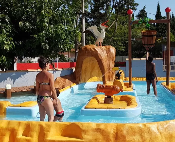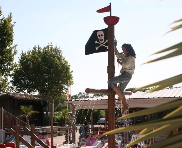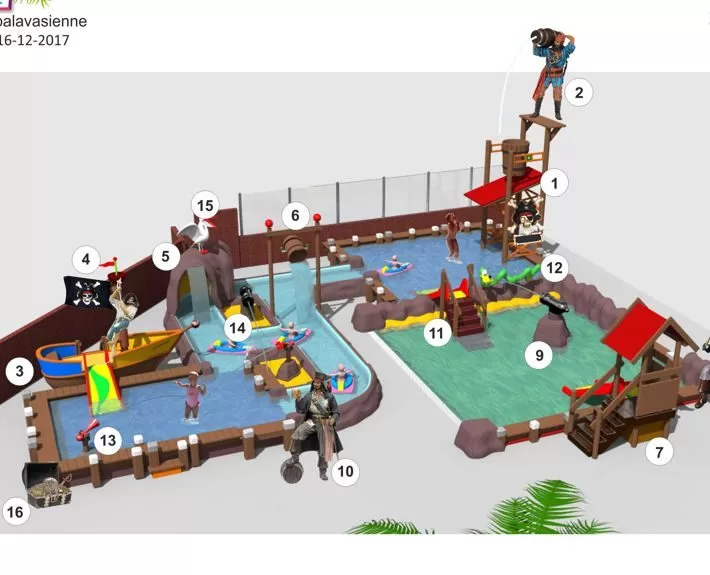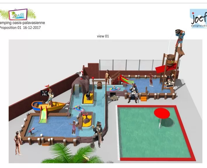 This project is themed ,,pirates”. The old toddler pool is integrated in the new design.